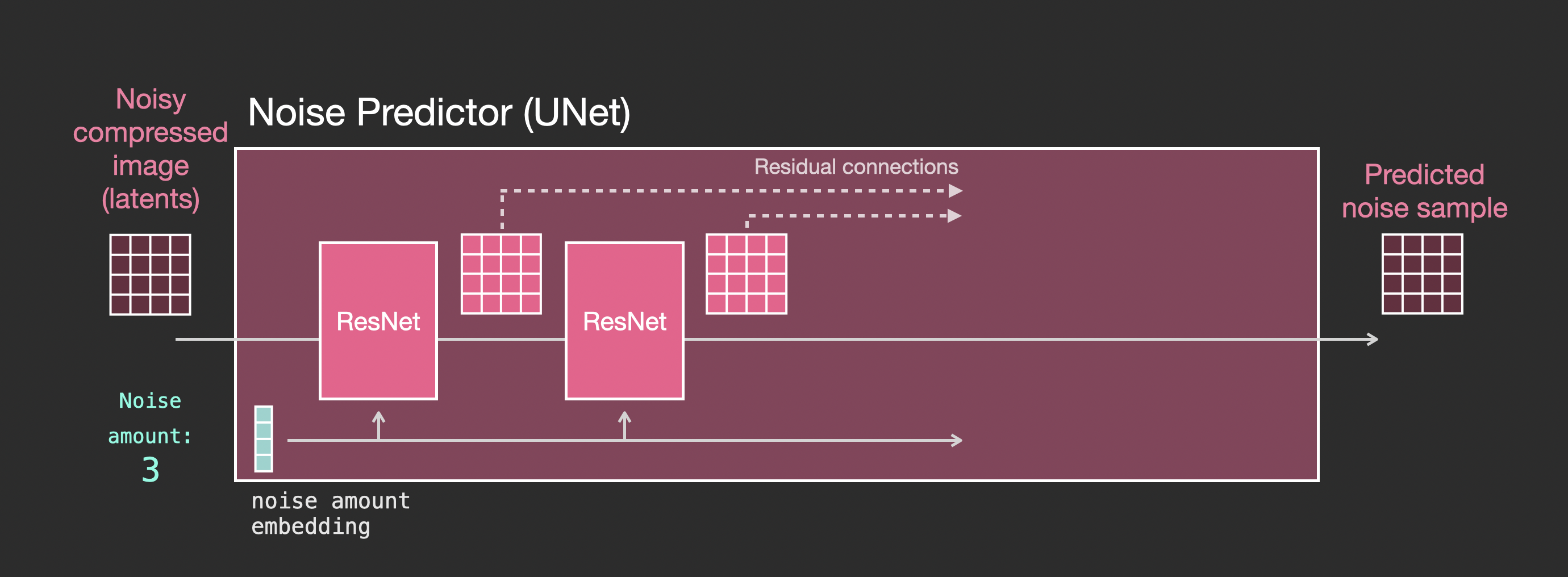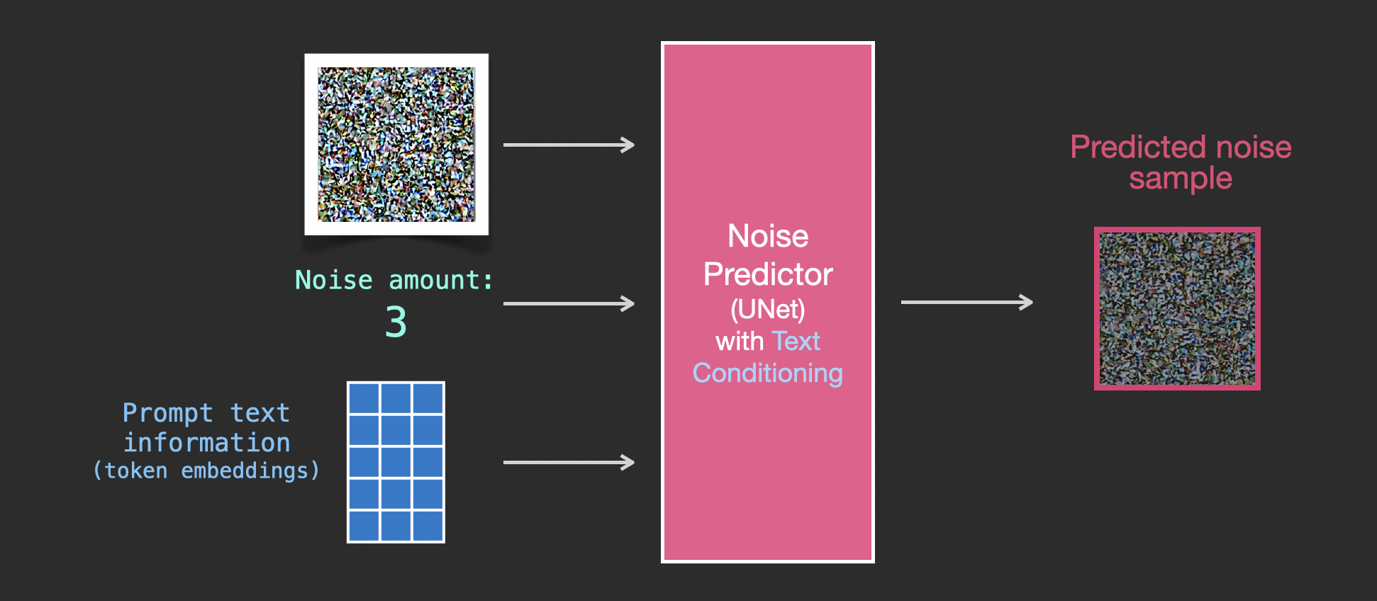 To make text a part of the image generation process, we have to adjust our noise predictor to use the text as an input.
