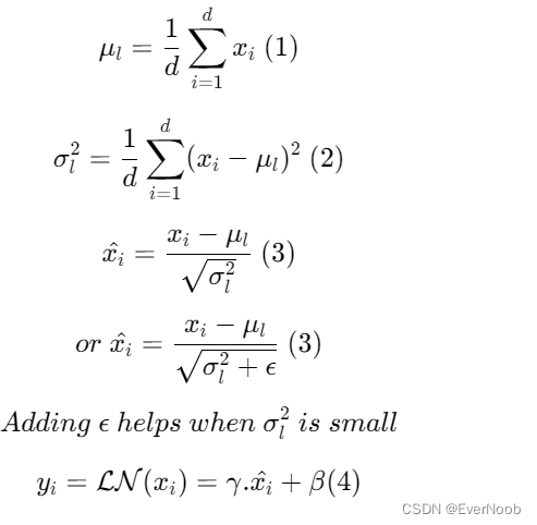 From these steps, we see that they’re similar to the steps we had in batch normalization. However, instead of the batch statistics, we use the mean and variance corresponding to specific input to the neurons in a particular layer, say k. This is equivalent to normalizing the output vector from the layer k-1.