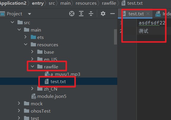 读取 src/main/resources/rawfile 目录下的文本文件内容,目录结构如下: