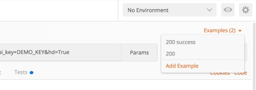 pm.collectionVariables.set("variable_key", "variable_value"); pm.collectionVariables.get("variable_key"); - Environment:环境变量允许请求适应不同的环境,例如:本地、测试、预演和生产环境,常常用来区别请求地址。