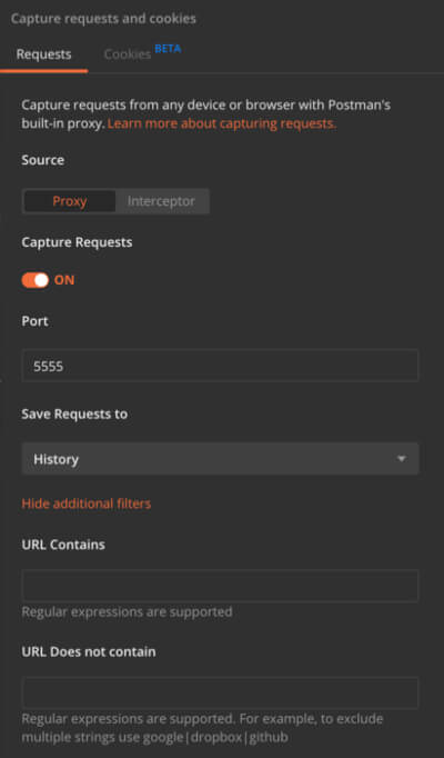 在 Postman 应用程序中有一个内置代理来捕获 HTTP 请求。