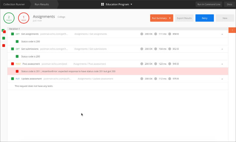 Postman 提供脚手架工具 Newman 来以命令行的方式来运行集合(Collection)请求,其提供和 Postman 桌面端一致的功能,可以集成在工作流的 CI/CD 中。