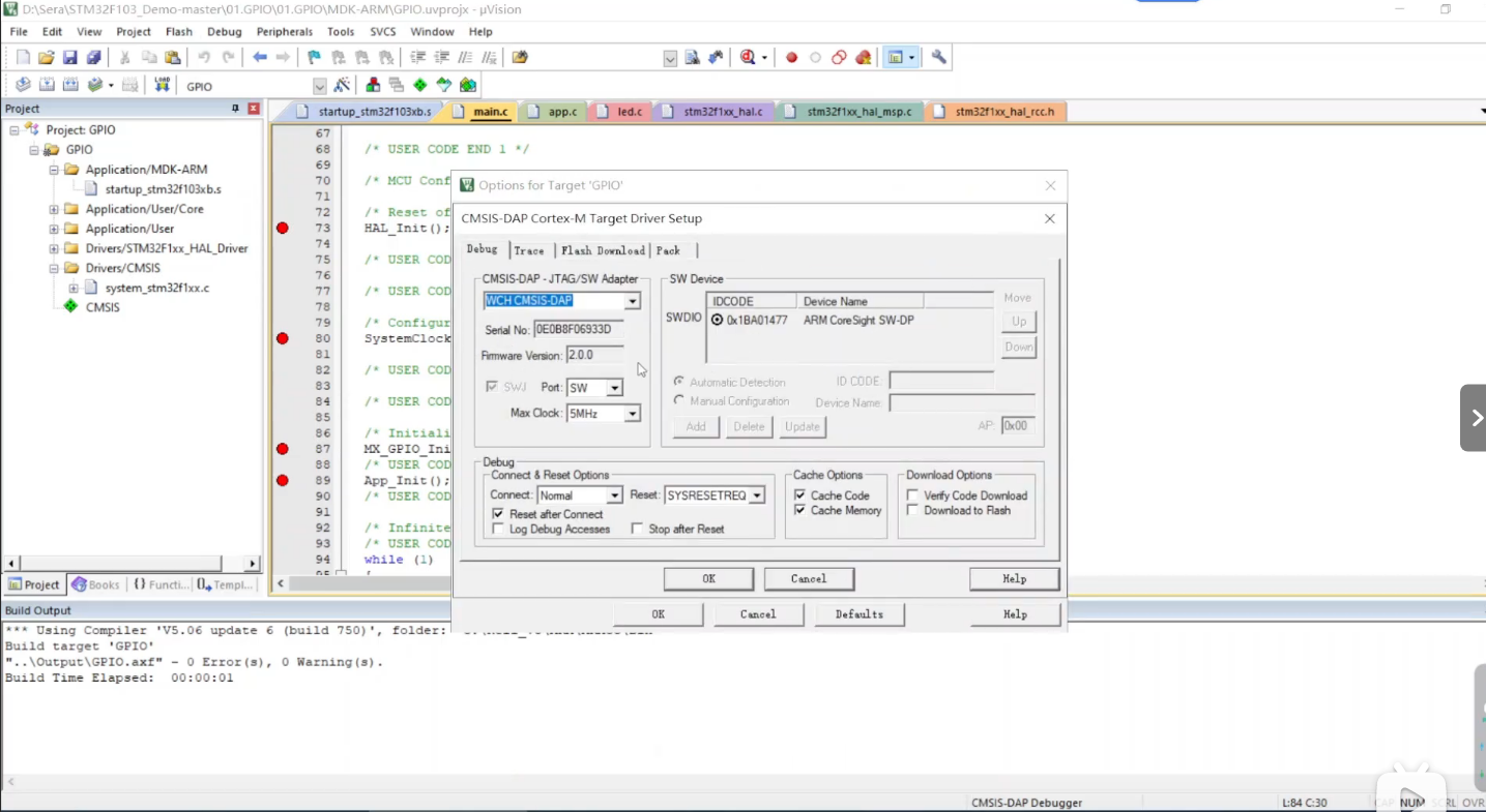 发现STM32目标板🆗,读取名称🆗,序列号🆗,设置SWD速率5MHz 🆗