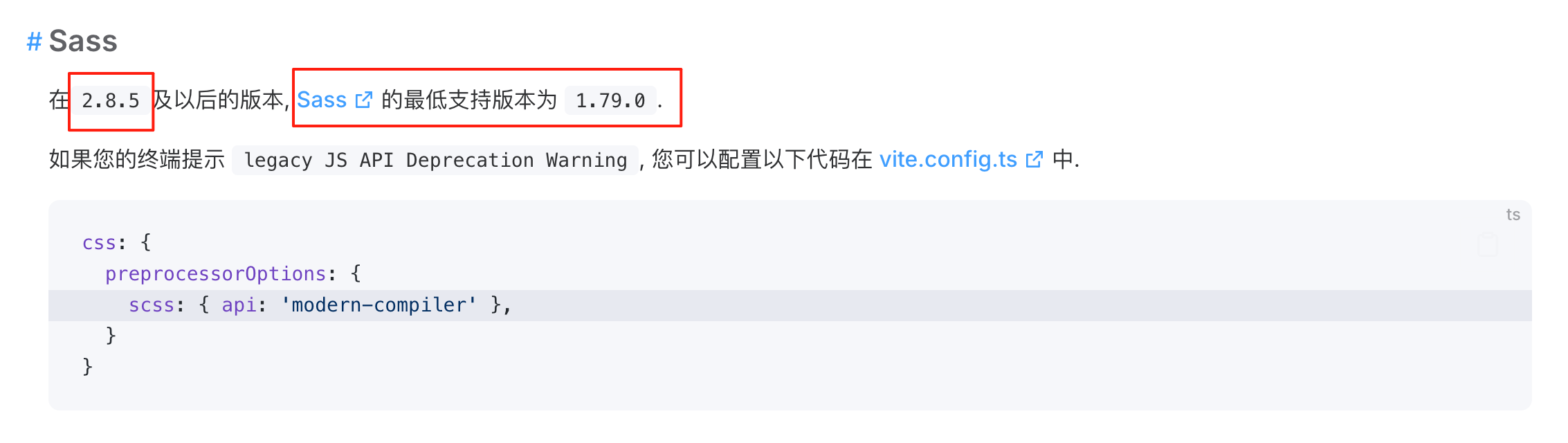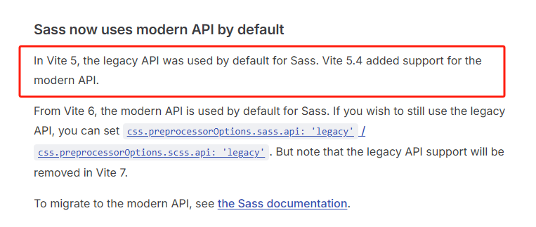 后来再搜索一番,发现 Vite 的版本也需要升级,vite5.4之后才支持modern api,vite版本低于5.4配置了也是无效的。