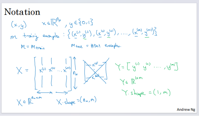 X:训练集中的x1/x2/x3等,n行m列(一般都是特征向量竖着组合); Y:1*m的矩阵