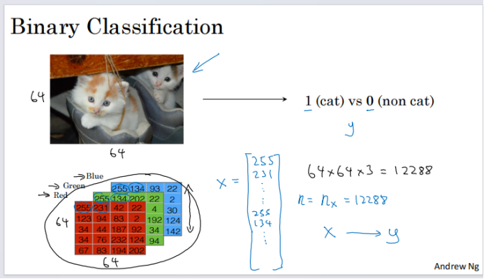 x:特征向量,保存了所有的像素信息,包括红绿蓝三个矩阵