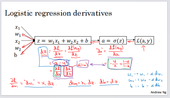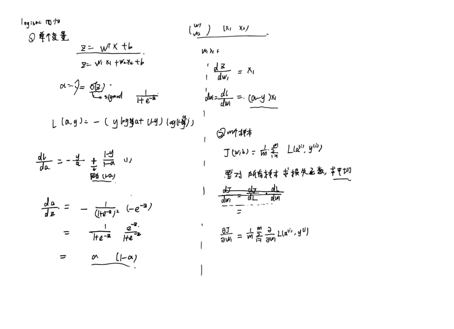 这是计算导数的完整过程,注意da/dz这个导数,要记得sigmod函数的原型