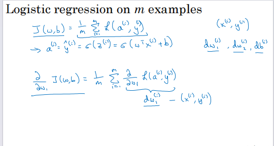 成本函数J对w1求导数,就是各损失函数对w1导数的平均值