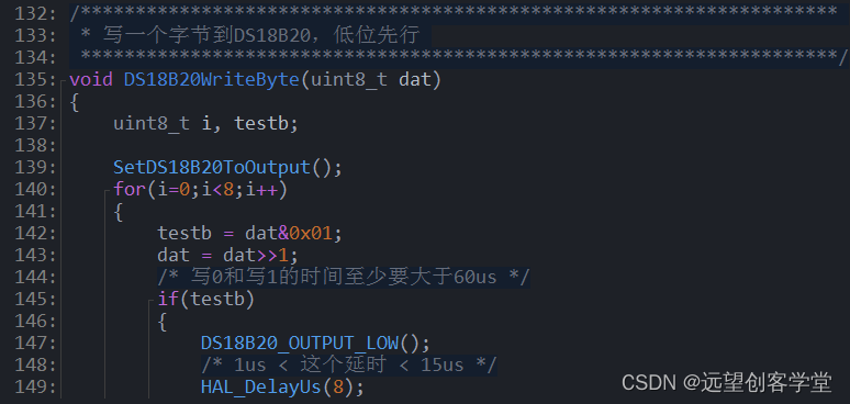 DS18B20是常用的数字温度传感器,和DHT11一样采用单线接口方式,STM32通过一个IO改变输入输出状态即可读取温度。与DHT11不同的是DS18B20支持多点组网功能,多个DS18B20可以并联在数据线上,通过不同的ID来读取不同点的温度。DS18B20测温范围为-55℃~+125℃,在-10~+85℃时精度为±0.5℃,测量精度和范围都比DHT11要高。