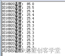 注意:DS18B20在上电第一次读取时显示温度为85℃,这是正常的。85摄氏度是DS18B20在上电复位后在温度寄存器内的对应数字量,多读几次即可。