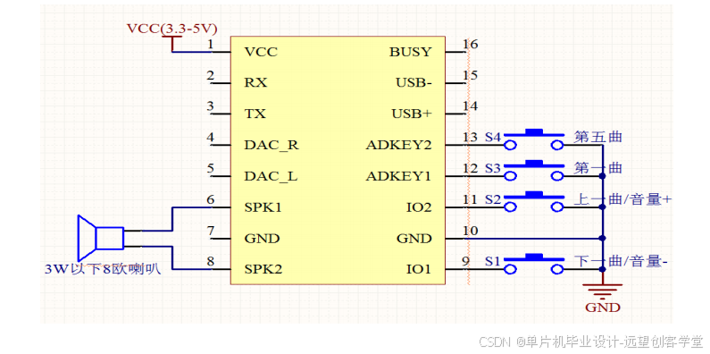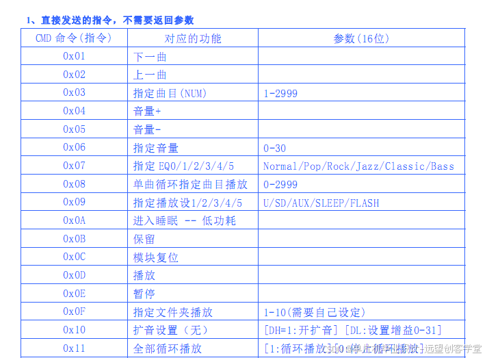 - 功率管理技术:由于DFPlayer Mini只需要提供输出音频信号的功放芯片所需的电流,可以在音频输出芯片之前进行电源放大,从而实现低功耗和长时间播放。