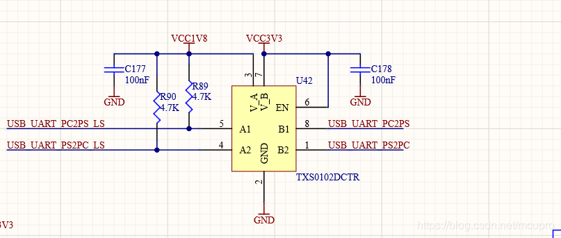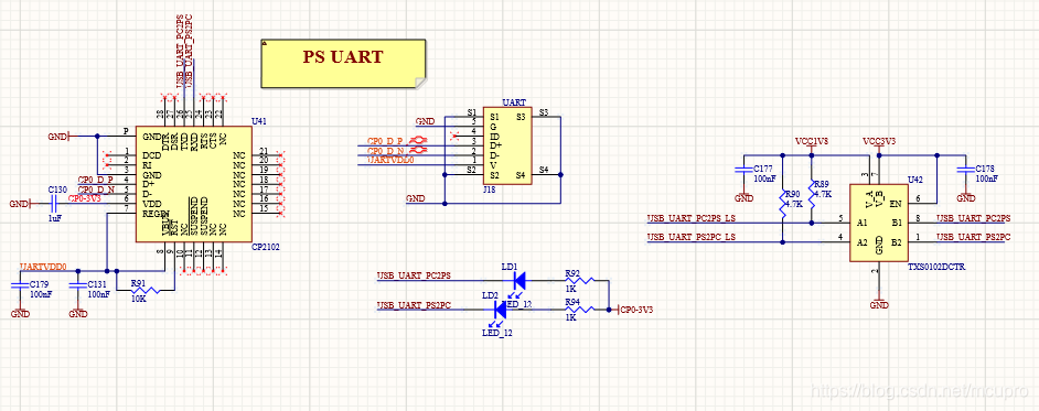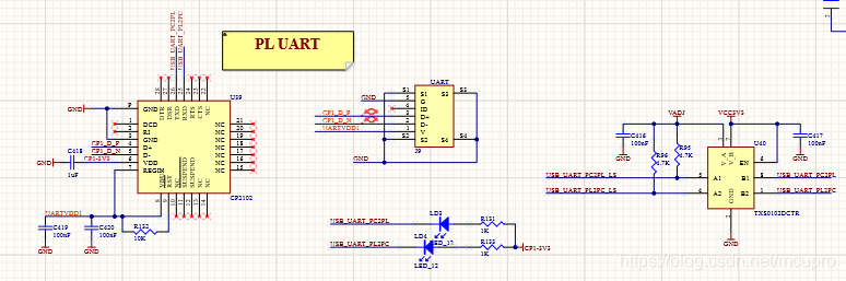 经过确认没有问题。其实这里发现ZC706官方板子用的是CP2103这芯片,而咱们新的板子用的是CP2102,差别就在CP2103的IO可以通过VIO这个脚设置。我们用CP2102不得不加上一个电压转换芯片: