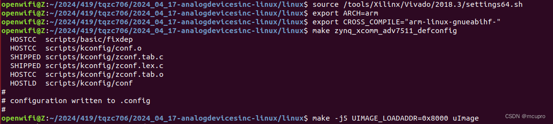 版本切换完成后就可以开始编译内核了,下图是编译32位的zynq配置