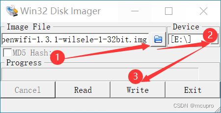 在下载img文件后使用Win32 Disk Imager工具把SD卡制作为启动盘。选择文件-->选择盘号-->写入