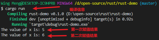 - 变量想多次赋值或使用,需要声明为mut变量。