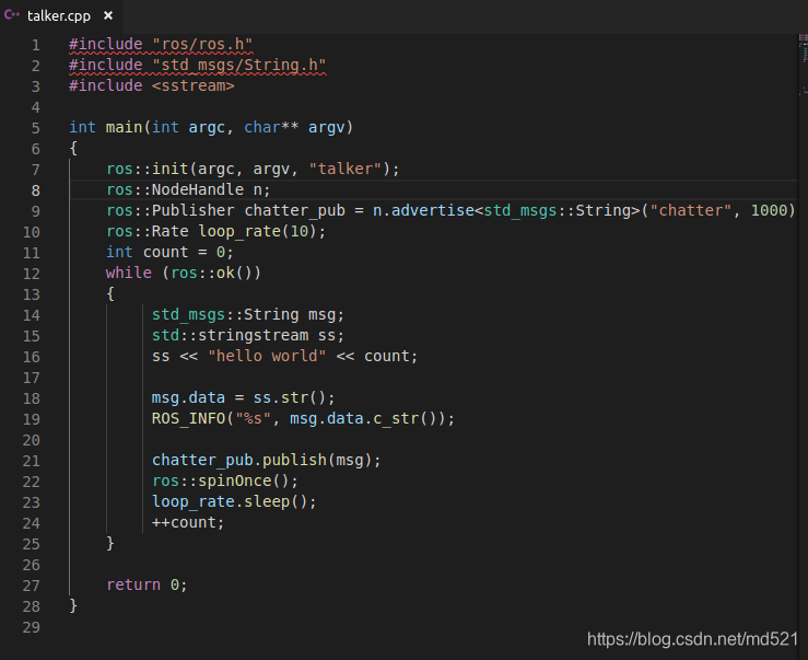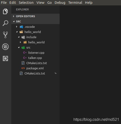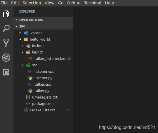 在hello_world/src文件夹下面创建talker.cpp和listener.cpp文件。