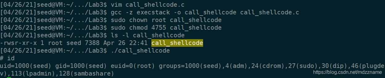 编译并修改为root set-uid程序,运行可以发现成功获取root shell