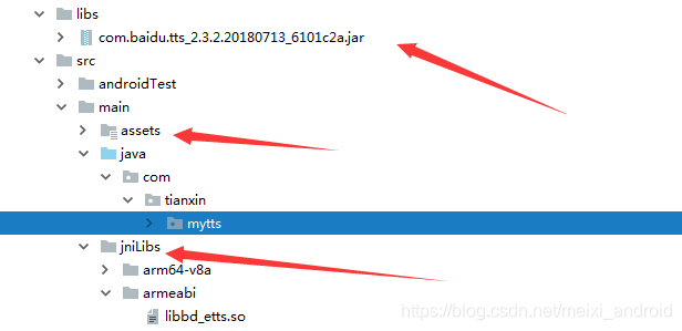 2、导入资源文件。语音jar,assets语音库,jni系统文件