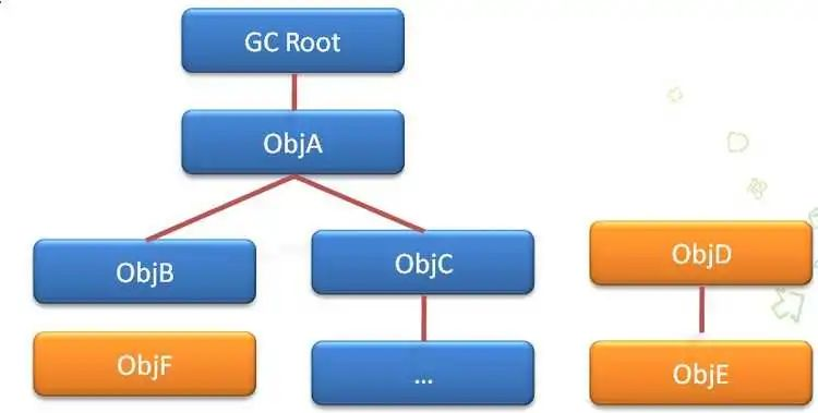 根搜索算法中,程序吧所有引用关系用一张图表示,从一个节点GC ROOT开始,寻找对应的引用节点,找到这个节点以后,继续寻找这个节点的引用节点,当所有的引用节点寻找完毕以后,剩余的节点被认为是没有引用的节点。