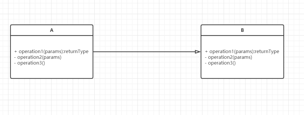 用空心箭头表示A继承自B