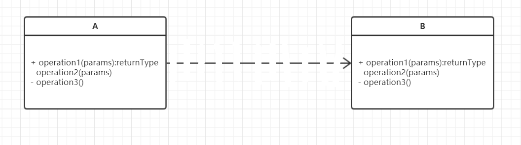 用带箭头的虚线表示两者之间的依赖关系。