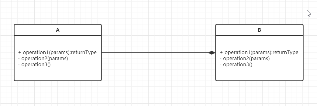 组合关系用带实心的菱形箭头表示。