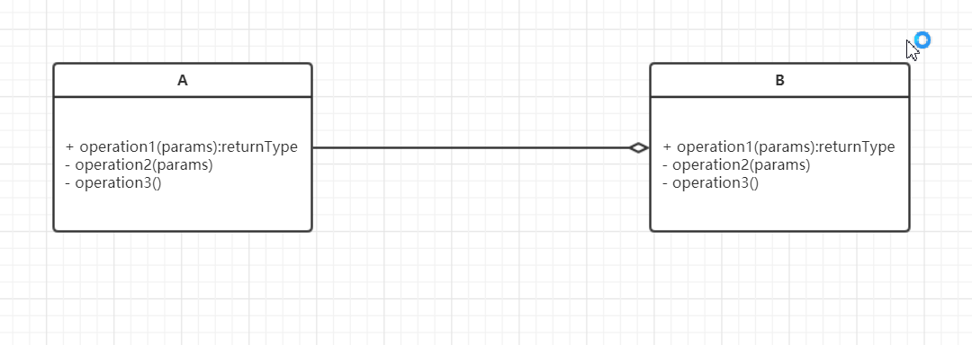 用带空心的菱形箭头的直线表示
