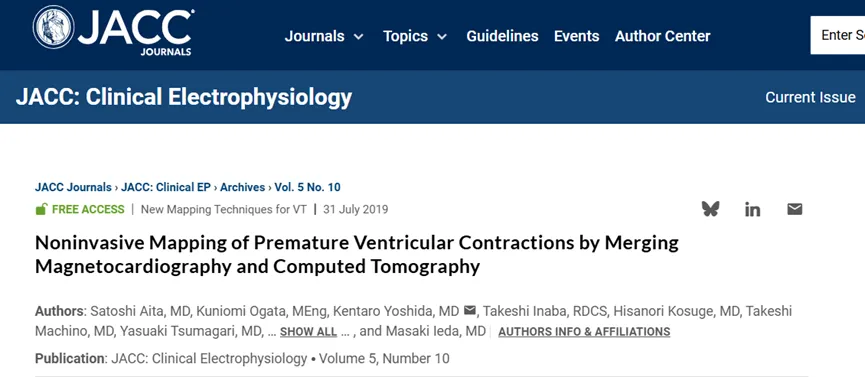 参考文献:Aita S , Ogata K , Yoshida K ,et al. Noninvasive mapping of premature ventricular contractions by merging magnetocardiography and computed tomography[J]. JACC Clin Electrophysiol, 2019,5(10):1144-1157.