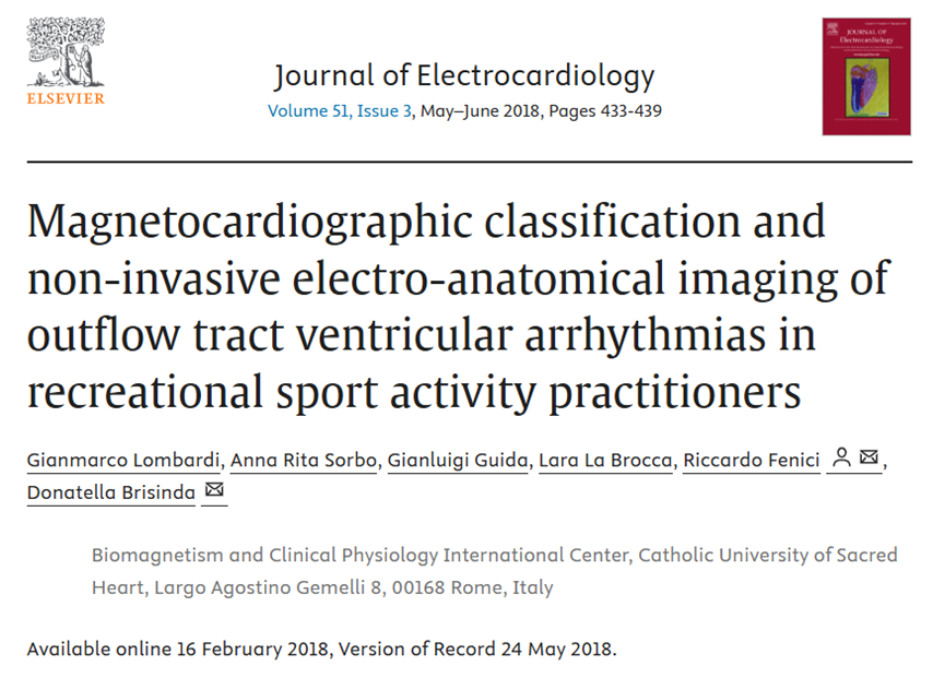 Lombardi G, Sorbo AR, Guida G, et al. Magnetocardiographic classification and non-invasive electro-anatomical imaging of outflow tract ventricular arrhythmias in recreational sport activity practitioners. J Electrocardiol. 2018;51(3):433-439.