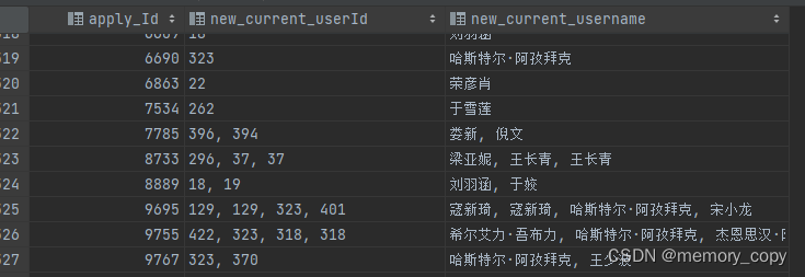 from ( select apply_id, userid from dwd.dwd_idmp_hr_sys_apply_info_di lateral view explode_split(split_part(current_userId, ':', 2), ',') tmp1 as userid ) tb1