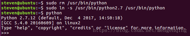 切换成python2.7.12,请执行下面的命令(任意目录下)