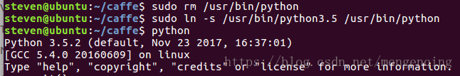 切换成python3.5.2,请执行下面的命令(任意目录下)