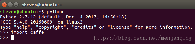sudo gedit ~/.bashrc - 在文件的最后面python的路径添加:export PYTHONPATH=~/caffe/python:$PYTHONPATH 或者 export PYTHONPATH=/home/steven/caffe/python:$PYTHONPATH