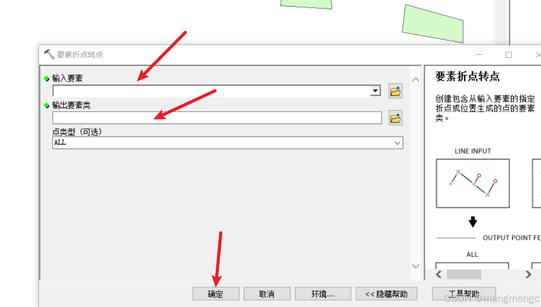 1、要素折点转点 打开工具箱——找到数据管理工具 选择要素——要素折点转点 输入后确定 2、投影坐标系转换地理坐标系 在工具箱中选择投影,输入刚才生成的——最后选择坐标系,一般是WGS1984 3、添加字段