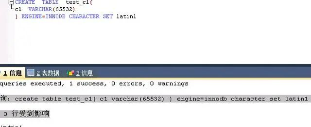 <n>查询:create table test_c1( c1 varchar(65532) ) engine=innodb character set latin1