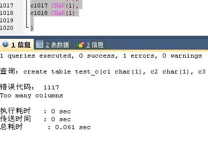 2. 测试表字段数限制
