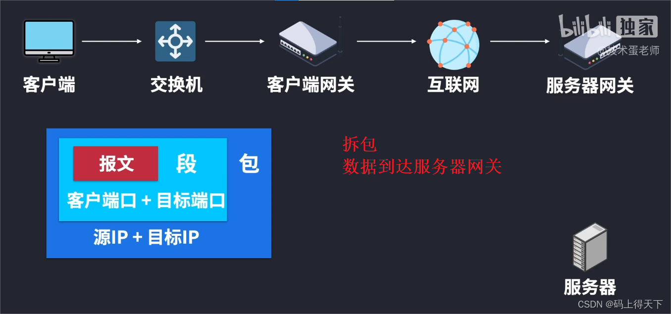①UDP协议:格式就是在数据前面加上端口号。UDP数据包也由标头和数据包组成,以下左图:标头部分定义发出的端口和接收端口,data部分为具体的内容。而后将整个UDP的数据包又放到ip数据包的数据部分,前面说过ip数据包又是放到以太网数据包中的,因此整个以太网数据包又成了下面右图样子:UDP标头部分只有个字节。总长度不超过65535字节,正好能够放进一个ip数据包。优势:简单易实现。缺点是可靠性差。因而引入了TCP协议。