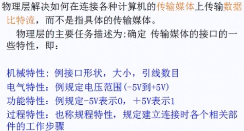 实体层。若是咱们的电脑须要联网,那么首先须要网线(光缆、电缆、无线电波,WIFI,网线)等方式均可以,主要规定网络传输的一些电器特性,做用是传输0和1这样的电信号。由于单纯传输0和1是没有意义的,全部引出了数据链路层。