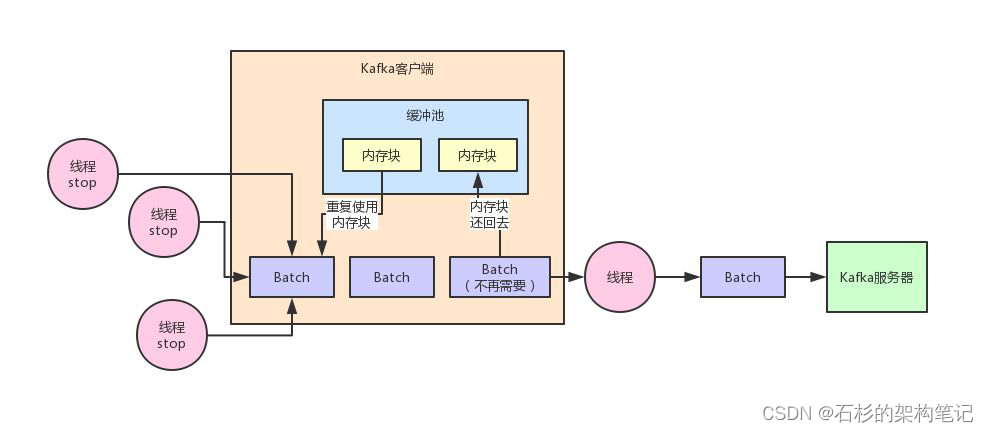 在Kafka客户端内部,对这个问题实现了一个非常优秀的机制,就是缓冲池的机制