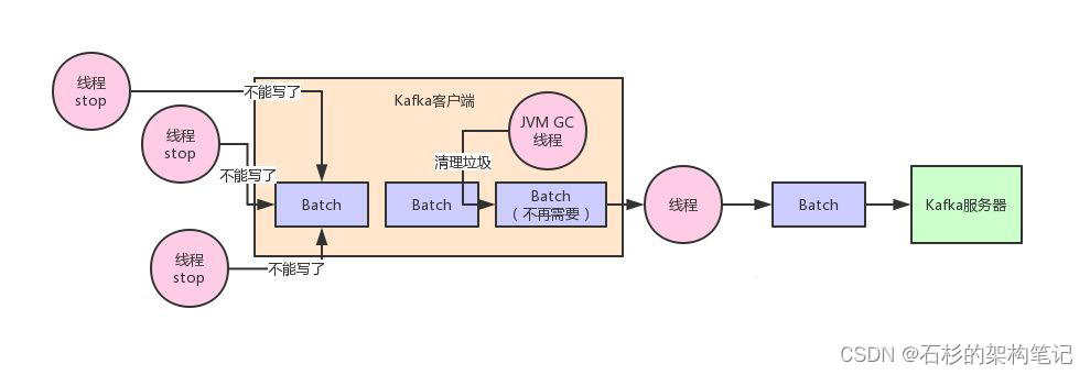 这样不断的让JVM回收垃圾,就可以不断的清理掉已经发送成功的Batch了,然后就可以不断的腾出来新的内存空间让后面新的数据来使用。