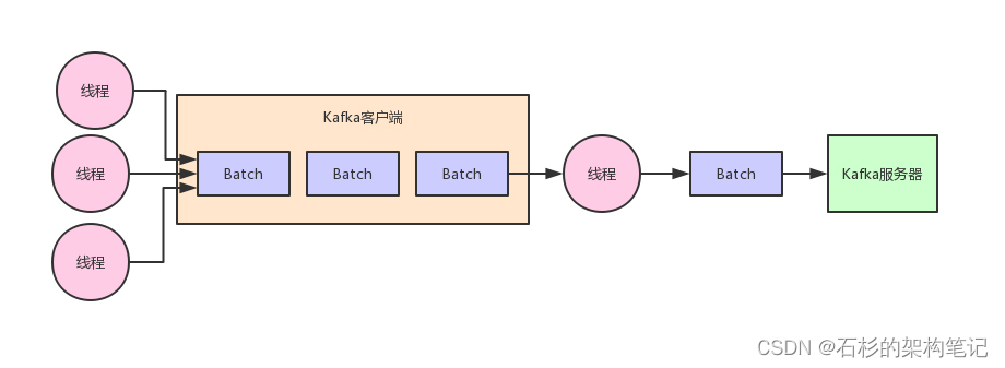 但是问题来了,大家可以思考一下,一个Batch中的数据,会取出来然后封装在底层的网络包里,通过网络发送出去到达Kafka服务器。