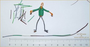 Согните получившемуся скелетику ручки-ножки в антропоморфном виде и он у вас должен встать на ноги и устойчиво стоять, как на фото.