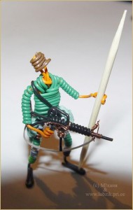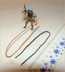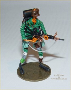 Проволока на всё это (кроме самого ножичка, который солдатик должен уверенно держать в "кулачке") использована потоньше – 0,4 мм.