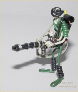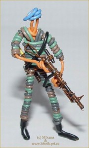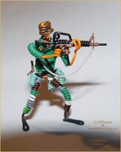 А вот очень старый солдатик, которого я слепил под впечатлением только-что просмотренного "Хищника". Обратите внимание, как здорово делать ленту с патронами из шлейфа к флопповодам!