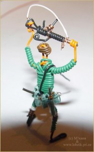 Поэтому рекомендую основную заготовку (проволочку) в руках повертеть и к пузу бойца примерить.