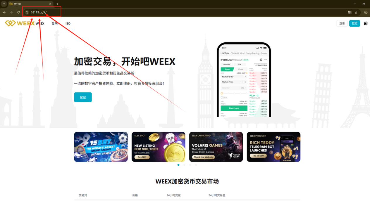 - 冒充页面设计:页面整体复制WEEX唯客交易所的官网布局,甚至连logo与下载按钮都一模一样,但一旦用户点击下载或注册,背后则是木马程序或跳转至非官方App。