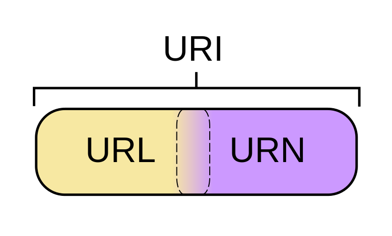 - URN = Universal Resource Name 统一资源名称,通过特定命名空间中的唯一名称或ID来标识资源。