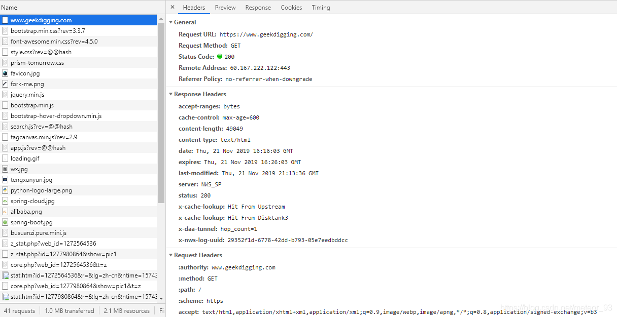 看第一行,www.geekdigging.com 那一行: