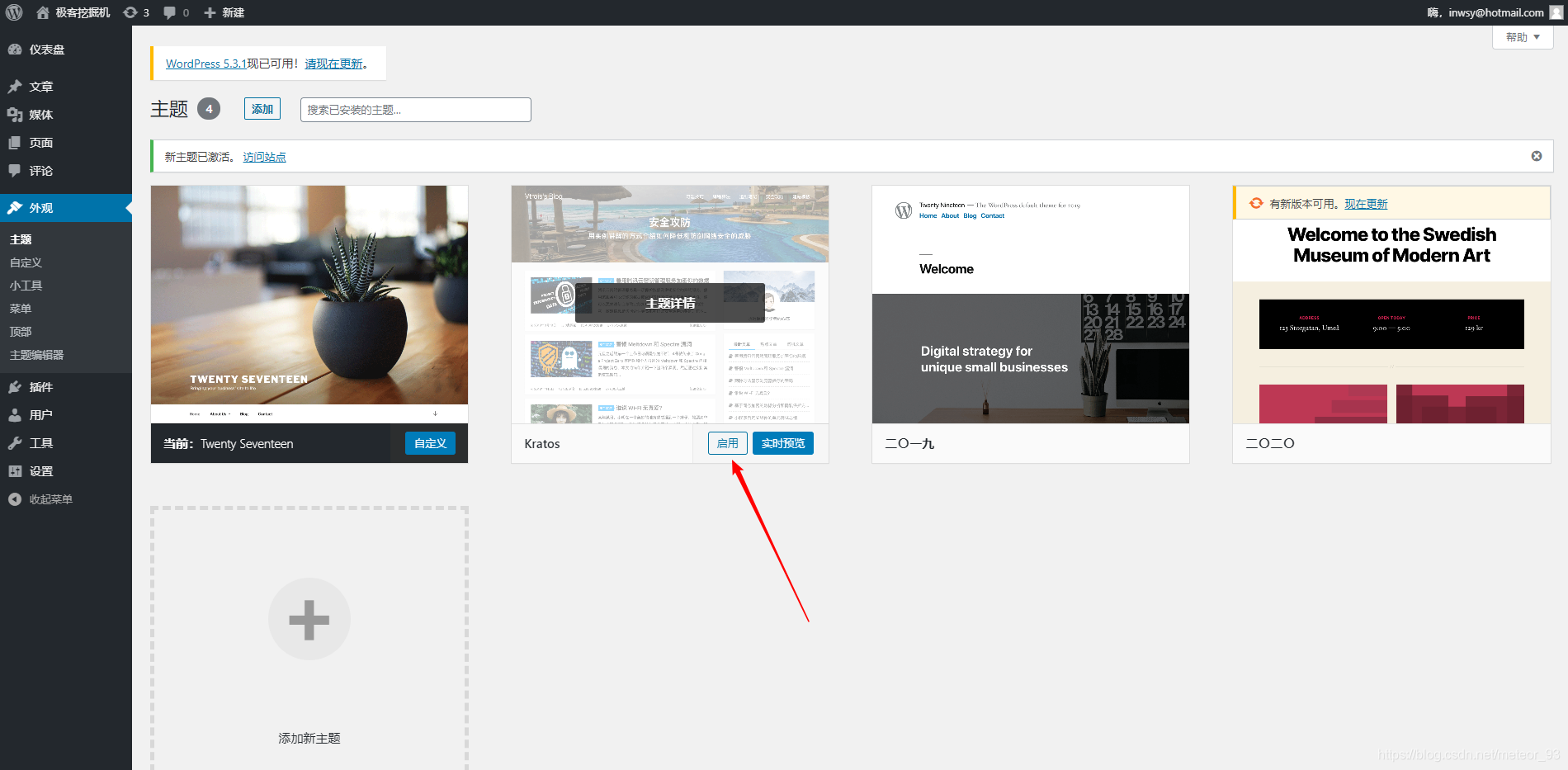 然后在 WordPress 的后台点开主题的配置,启用这款主题即可。