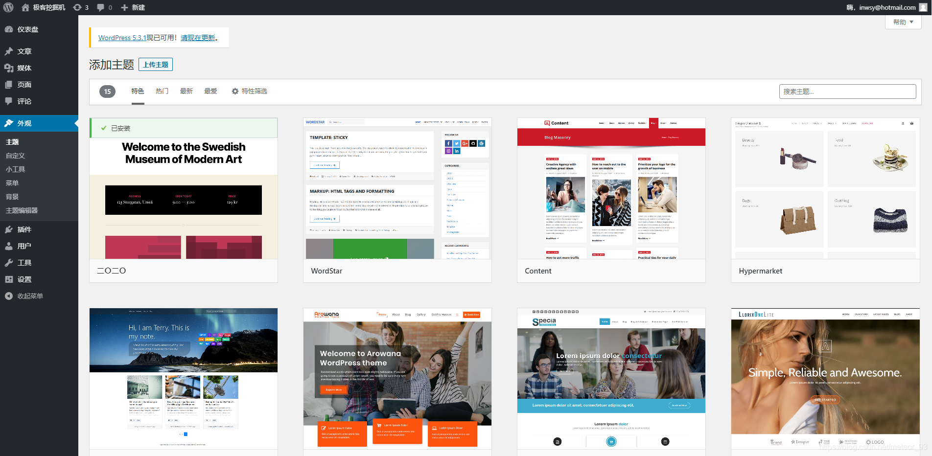 WordPress 已经装好了,默认的主题风格小编实在有点受不了,至于 WordPress 主题的来源,大家可以看下 WordPress 的官方主题库: